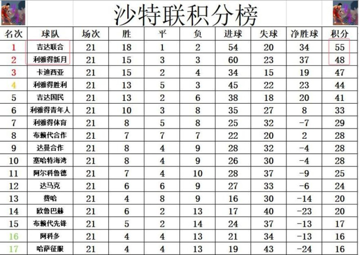 除了这场焦点战,其他比赛也同样精彩纷呈。阿尔科鲁德1-0击败麦加统一,利雅得青年人2-2战平布赖代合作,这些比赛的结果也对最终的联赛排名产生了一定的影响。
