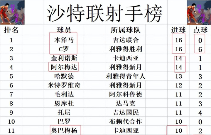 这场比赛中,多位球星都交出了令人印象深刻的答卷。首先,毫无疑问,本泽马是吉达联合取胜的关键人物。他不仅打入一球,更在场上展现出了超凡的组织能力和球场掌控力。本泽马的进球,没有依靠点球,更凸显了他个人能力的强大。值得一提的是,本泽马本场比赛进球后,与利雅得新月的巨星C罗并列射手榜榜首,两人均以16粒进球领先其他球员。这无疑为本赛季的射手王之争增添了一丝悬念,两人将在接下来的比赛中继续竞争。